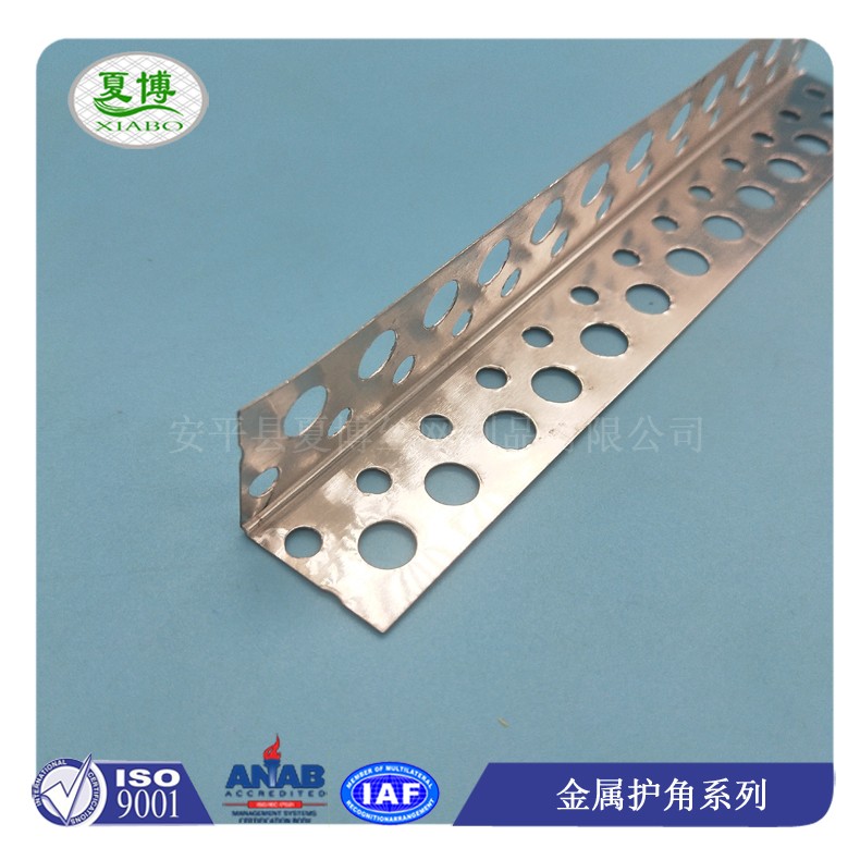3、金属护角条分冲孔和扩张两种,不但方便打钉且使得护角条与边角部位的石膏板或者其他粘结材料结合的更加牢固。